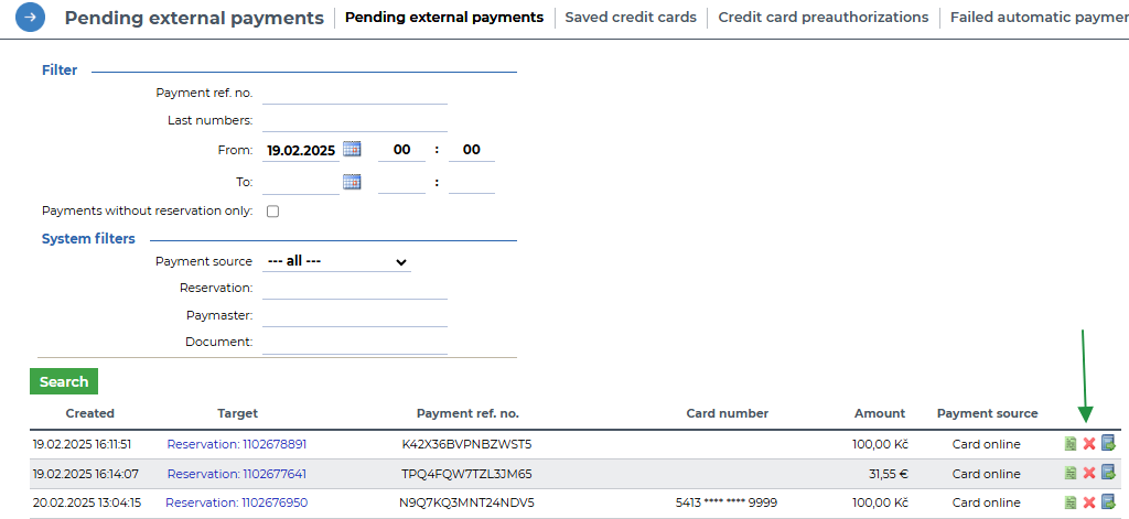 Both the deposit invoice and the pending external payment can be used, for example, to settle cancellation fees or to transfer them to another reservation or to a paymaster.