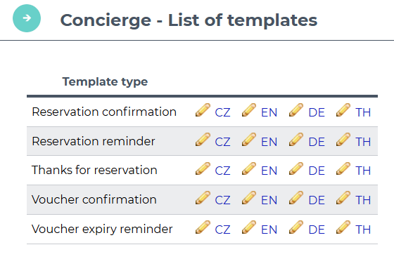 Templates of a given type can only be activated if the corresponding mailing is enabled in the Concierge settings by HotelTime Admin.